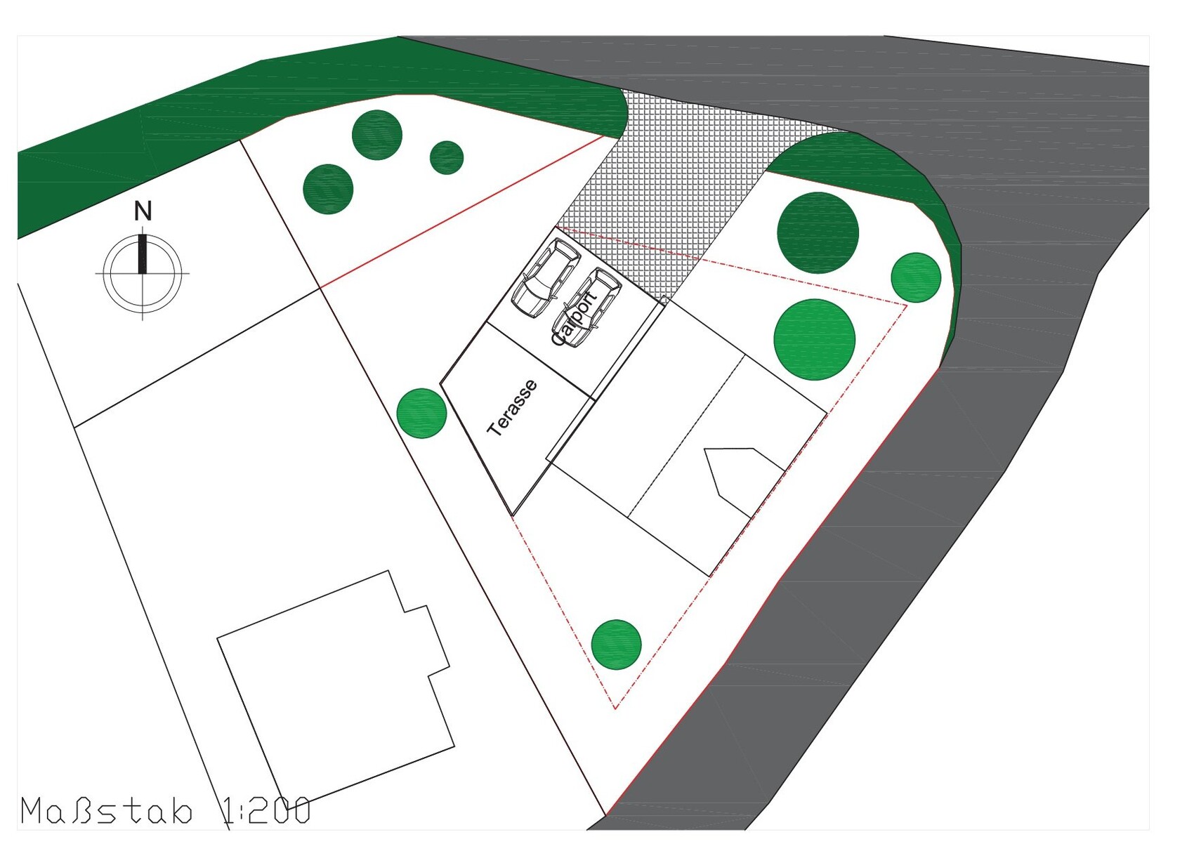 Von wo aus fahrt ihr zum Carport: Siehe Grundriss.