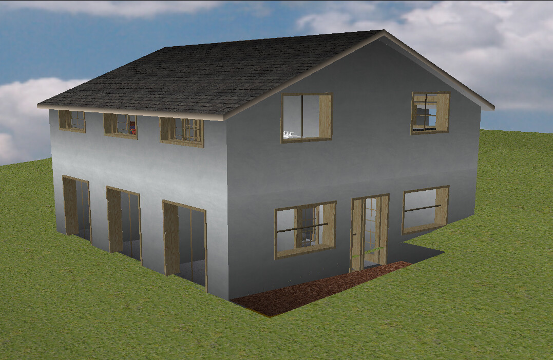 Die Geländemodellierung fehlt hier noch komplett. Das ist sehr aufwendig für eine schnelle Skizze. Deswegen musst Du Dir das denken. Du fällst also nicht oben aus der Terrassen-Tür, sondern bis dort ist angeschüttet. 😉