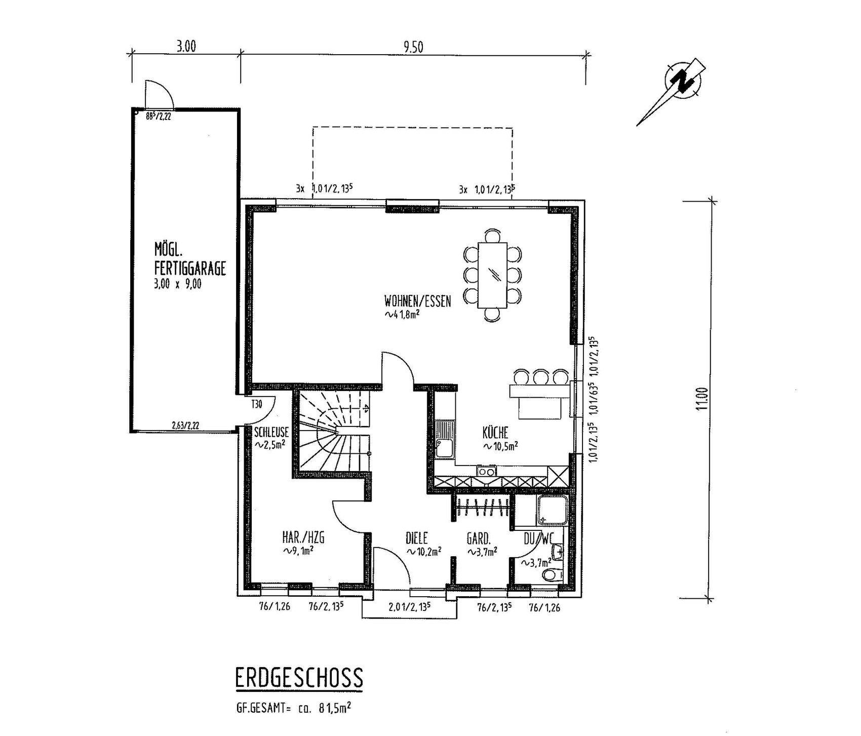 Das eine ist der Zugang über die, als Speis getarnte Schleuse; das andere die Raumanordnung ´Schlafen, Ankleide & Bad`. Einer meiner Architekten baut gerne mal ne Schleuse zwischen Garage und Hauswirtschaftsraum ein und ich kann mich gut daran erinnern, daß ich - bei einem Entwurf, den ich Dir angehängt habe (die Interessenten hatten allerdings größere Kinder) - tagelang zwischen kreativem und ausführendem Architekt vermittelt habe. Ich fand - und btw. finde - die Idee immer noch gut, allerdings hat unser Architekt die Schleuse praktikabler ausgeführt und nicht mit einer weiteren Türe/einem Durchlaß über Eck versehen. Hier wirst Du - sobald Kinder da sind, feststellen, daß Deine Lösung nicht die beste Idee ist. Egal, ob volle Einkaufstüten oder Kinderwagen - Du wirst stets gezwungen sein, einen Stopp in der Speis einzulegen; vmtl. schon weit vorher in der Garage ... sofern der PkW Platz dafür läßt.