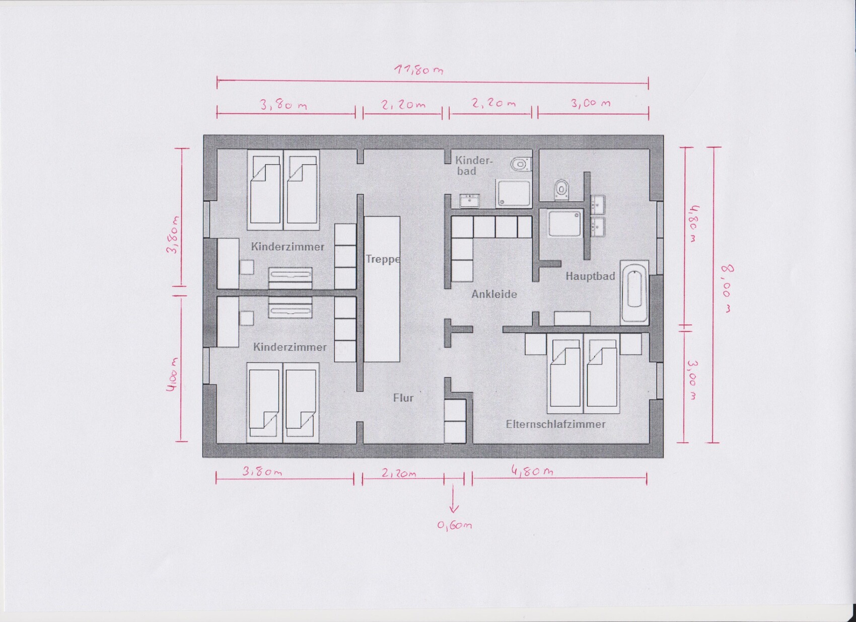 Die langen Seiten haben als Dachseiten keine Fenster. Hier möchten wir gerne jeden Raum mit einem Dachflächenfenster ausstatten. Außerdem bestehen derzeit Überlegungen (aus optischen Gründen) pro Dachseite jeweils eine Gaube auf Höhe des Flures einzusetzen.
