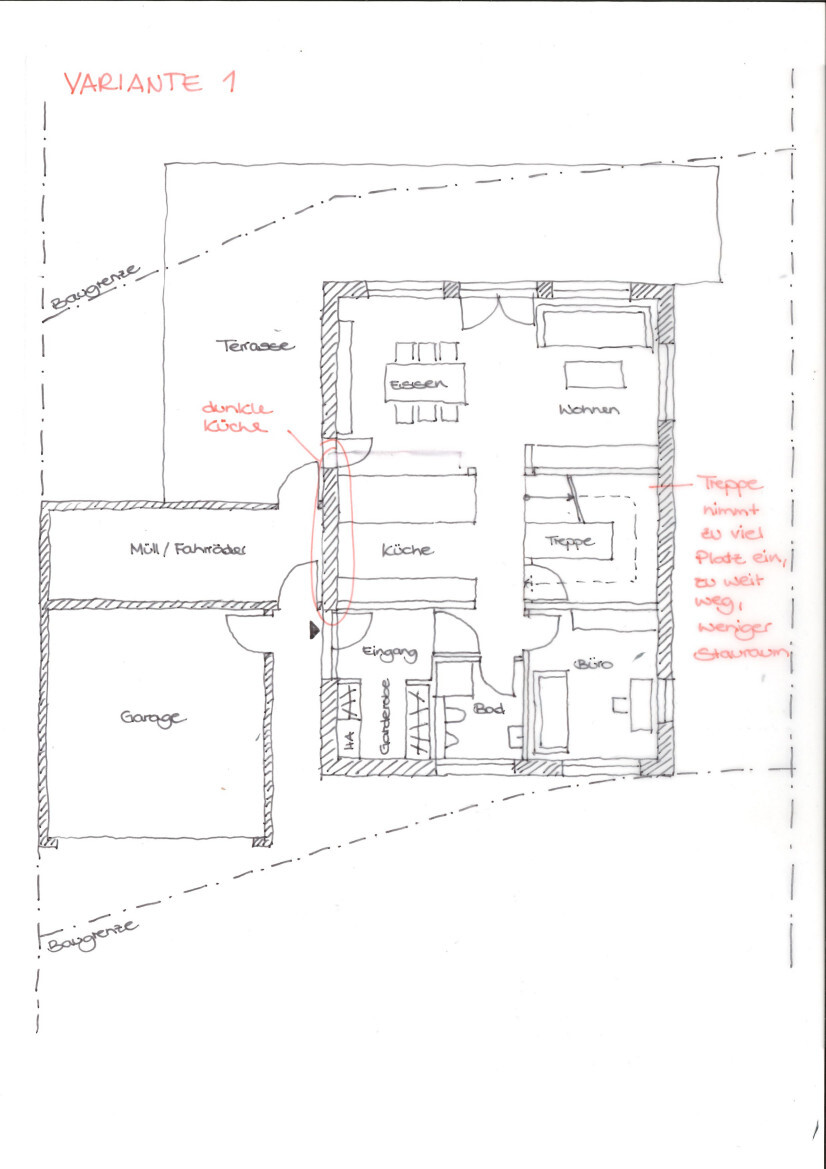 Also Carport statt Garage, und schon erledigt sich der separate Kegelbahn-Durchgang ?Nein, ich plädiere für eine Garagenlage planrechtsunten... da ergibt sich dieser Gang gar nicht.