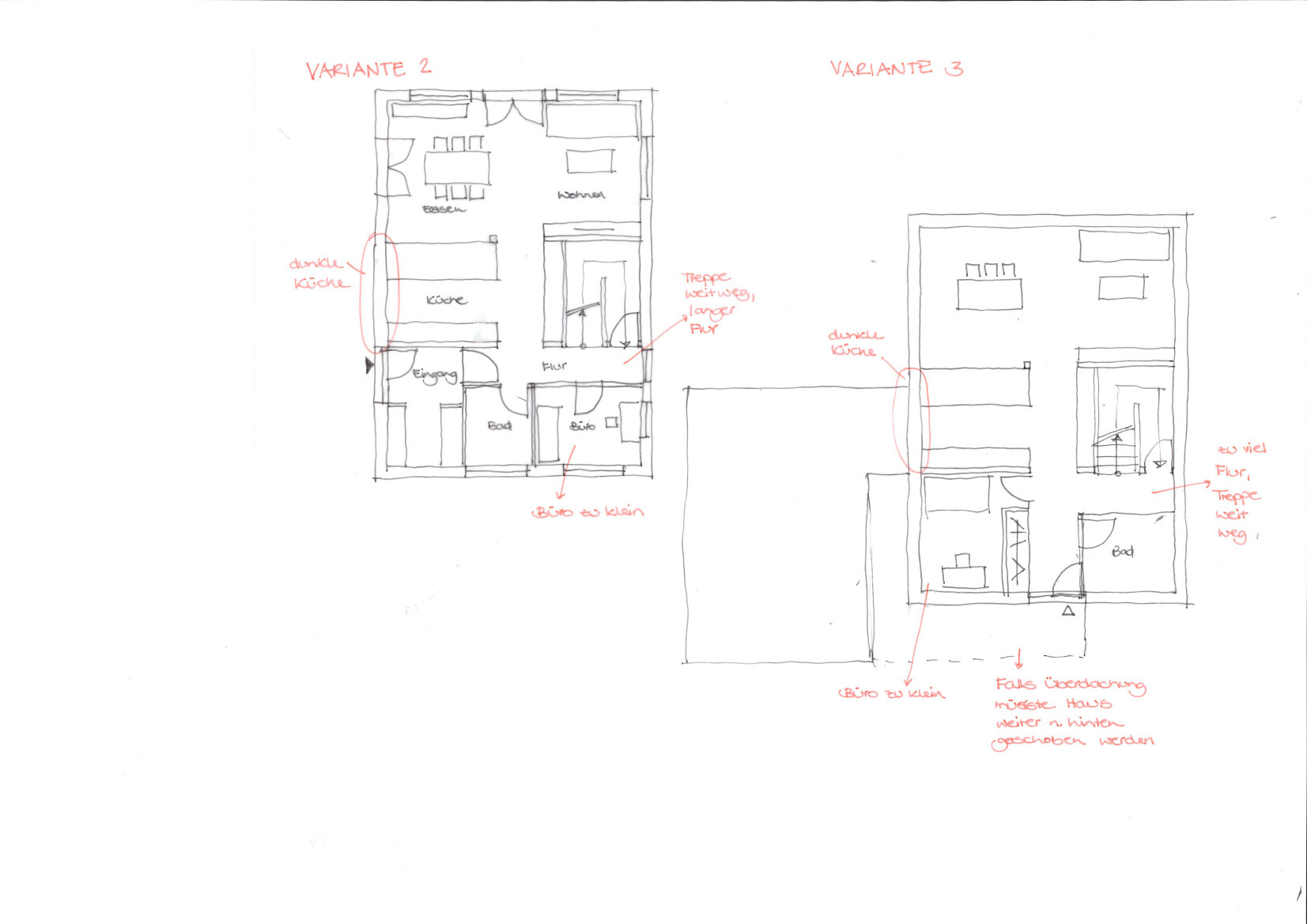 wir haben uns Eure Anregungen durch den Kopf gehen lassen und verschiedene Optionen durchgespielt, die ich hier mal anhängen möchte. Aber ehrlich gesagt überzeugt uns keines der neuen Konzepte so wirklich. Noch schlimmer ist dabei, dass wir uns mittlerweile auch nicht mehr sicher sind bzgl. unseres ursprünglichen Entwurfs...