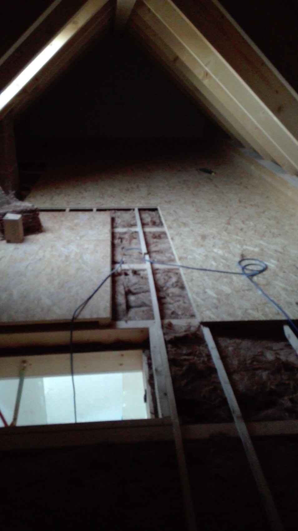 Ohne indiskret zu werden: Würdest du vielleicht 1-2 Bilder von deinem Dachboden zur Verfügung stellen? Ich würde gerne mal einen Eindruck der tatsächlichen Platzverhältnisse bekommen.Evtl. Hilft dir das etwas, Hausmasse sind in etwa die gleichen wie bei dir nur die Dachneigung ist geringer, wir haben in der Mitte etwa 1,75 m zum stehen. Ansonsten siehst du hier etwa die Hälfte der Fläche. Hinten im Schatten folgt noch eine Länge Osb-platten, also ca 2.25 die man nicht erkennen kann.