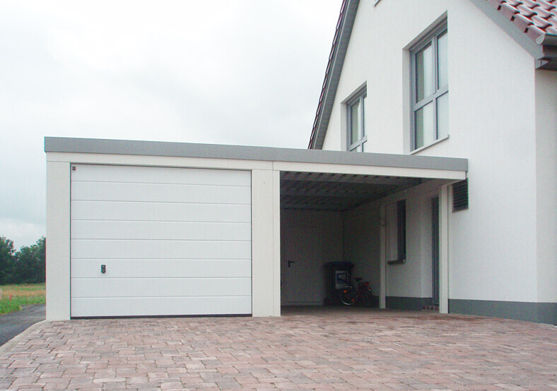 Über eine Doppelgarage hatten wir auch nachgedacht. Allerdings ist unser Grundstück mit 436 m² eher klein. Meine Frau hat die Befürchtung, dass eine Doppelgarage optisch alles "zubaut", daher wollten wir auf die Kombi verlängerte Einzelgarage + Carport mit Hausanschluss setzen. Der Hauseingang ist ebenfalls passend seitlich platziert, so dass wir stets trockenen Fußes in Haus & Garage kommen. Eingangsüberdachung ist somit "gratis" dabei.