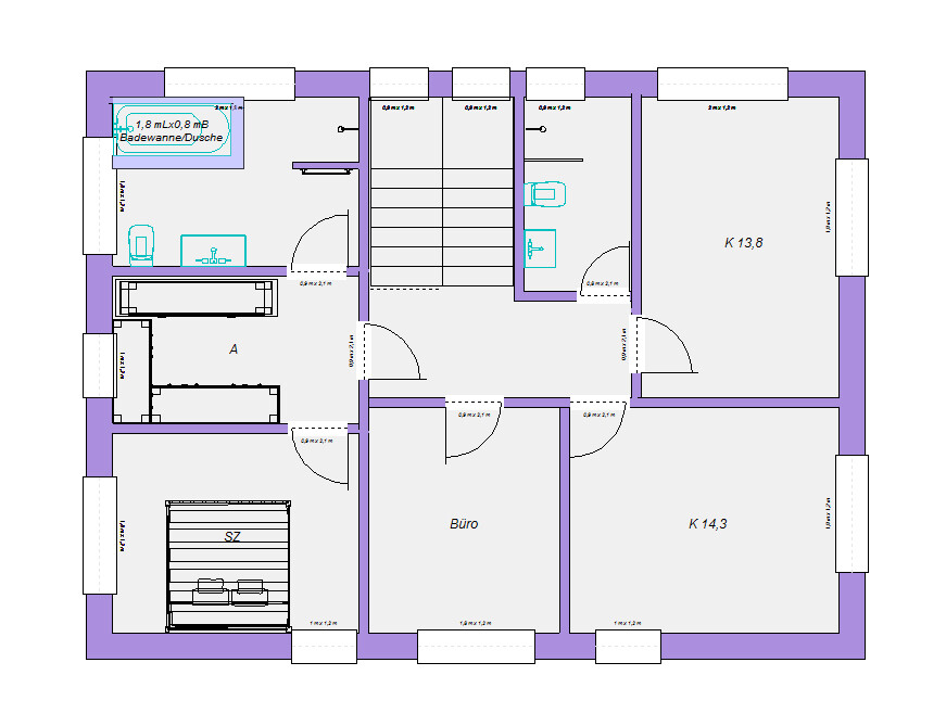 - Neben dem Bett im Elternschlafzimmer werden keine 60cm sein. Dies ist sehr, sehr wenig! Dafür ist am Fußende Platz um einen Walzer zu tanzen, denn den eingezeichneten schrank für dem Fenster wird es ja nicht geben.