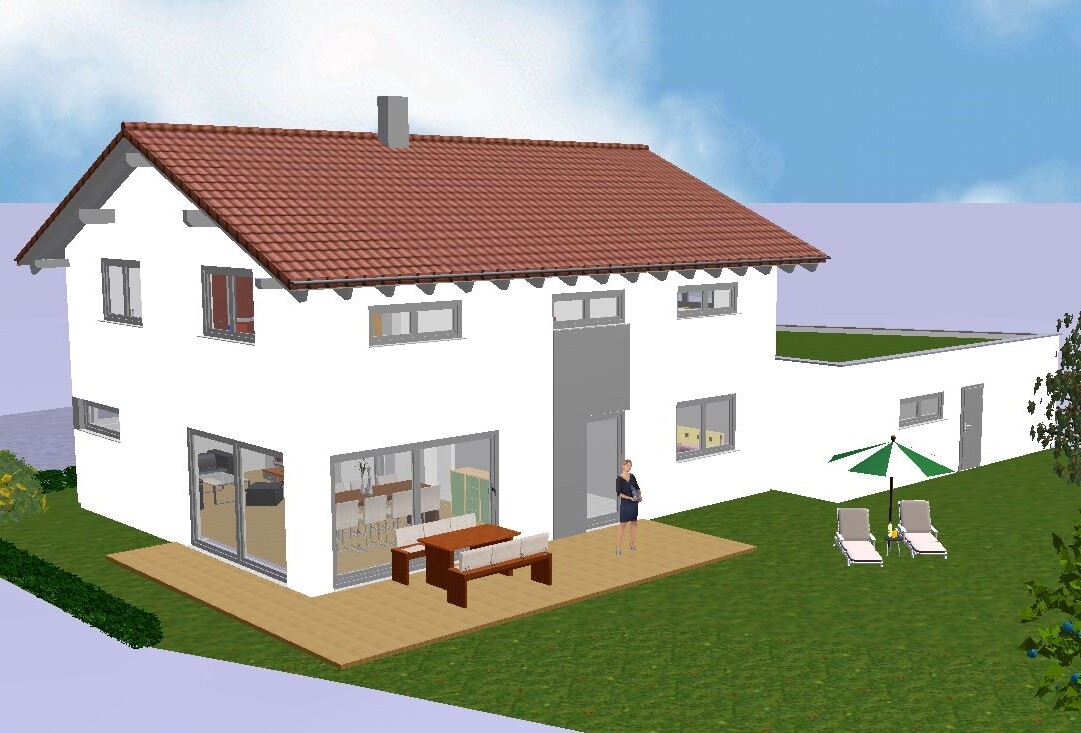 , die Ansichten sind angehängt . Allerdings stimmen die Fenster noch nicht so ganz (Höhe, Breite, Position) sowie die Schiebetüren in den Garten.