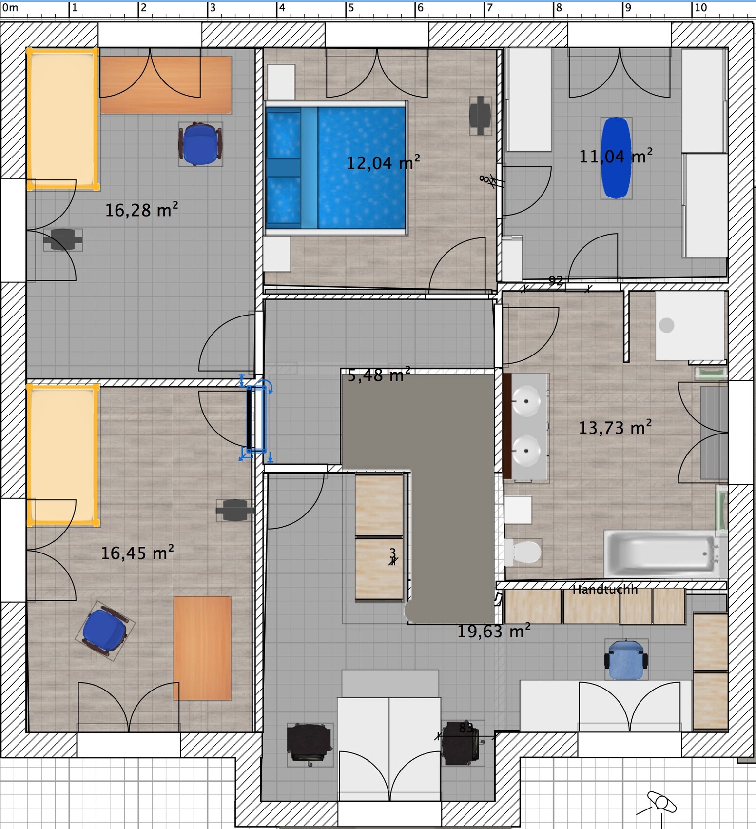 Allein schon das Maßlineal der Zeichensoftware verleitet dazu, gleich mit konkreten Dimensionen zu arbeiten. Erst wenn die Raumanordnung auf dem Kritzelblatt steht, sollte man überhaupt mit Maßen arbeiten.