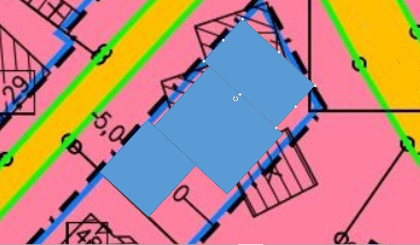 So wie du es gezeichnet hast, passt es nicht. Wir wollen es gerne 90 grad versetzt haben (Garageneinfahrt und Haupteingang von der Straße oben). Ich weiß das wir 2m über die Baugrenze gehen, aber in ersten Gesprächen mit der Stadt wurde uns signalisiert, dass das kein Problem sein sollte - da viele andere Häuser auch überstehen. Garage darf außerhalb vom Baufenster gebaut werden.
