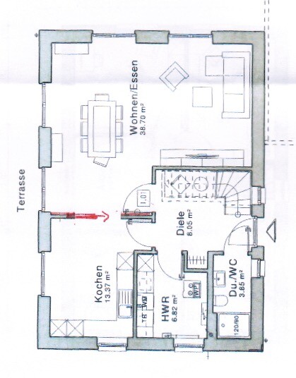 Ich musste den Grundriss abpausen. Daher ist die Treppe auch so komisch eingezeichnet.Da ist alles so komisch eingezeichnet. Ein Handyfoto wäre vermutlich klarer.Ähnliche Themen