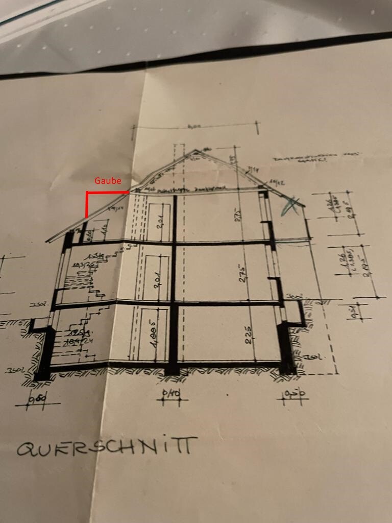 Hallo zusammen, habe die Grundrisse heute bekommen und war fleißig. Ich würde mit einer Gaube auf der einen Seite auskommen, da die Raumhöhe auf der gegenüberliegenden Seite nicht beinträchtig wird. Somit müsste wir das Dach nicht komplett entfernen und neumachen.