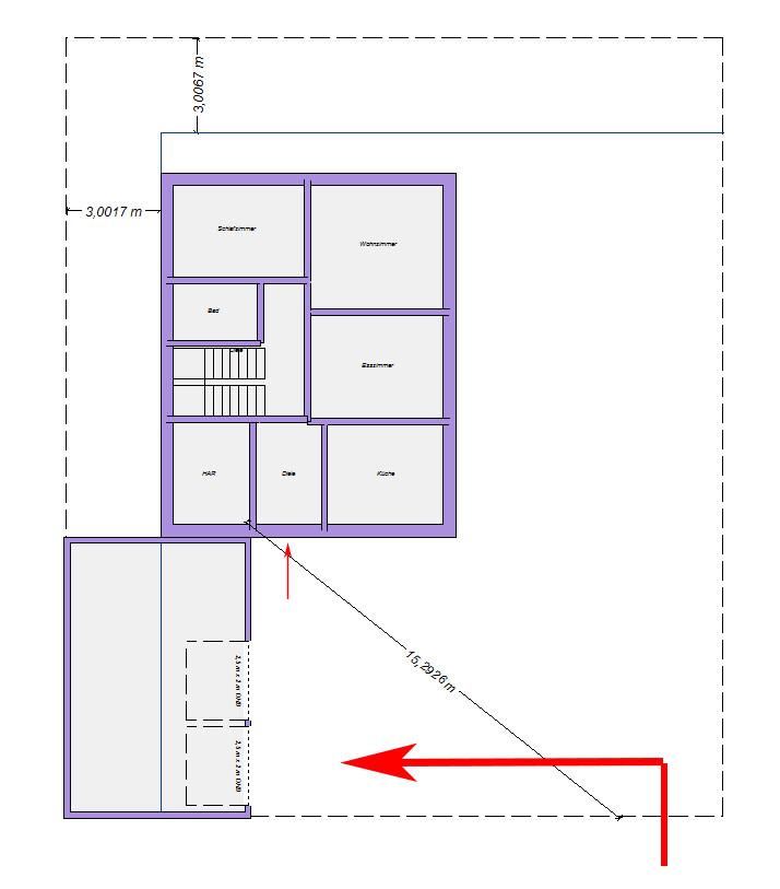 Das ist ja nicht überall gleich aber normalerweise dürfen und sollten Leitungen ja auch nicht überbaut werden. Das würde bedeuten, Du musst noch ein ganzes Stück um's Haus bei Deinem Entwurf. Uff!