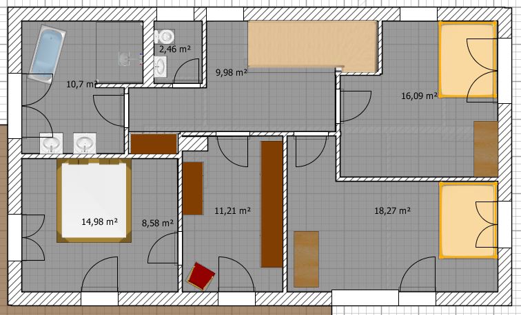Vielleicht hat hier noch jemand eine gute Idee? Vorteil wäre die Nähe zum Bad und evtl bessere Einrichtungsmöglichkeit des Schlafzimmers?