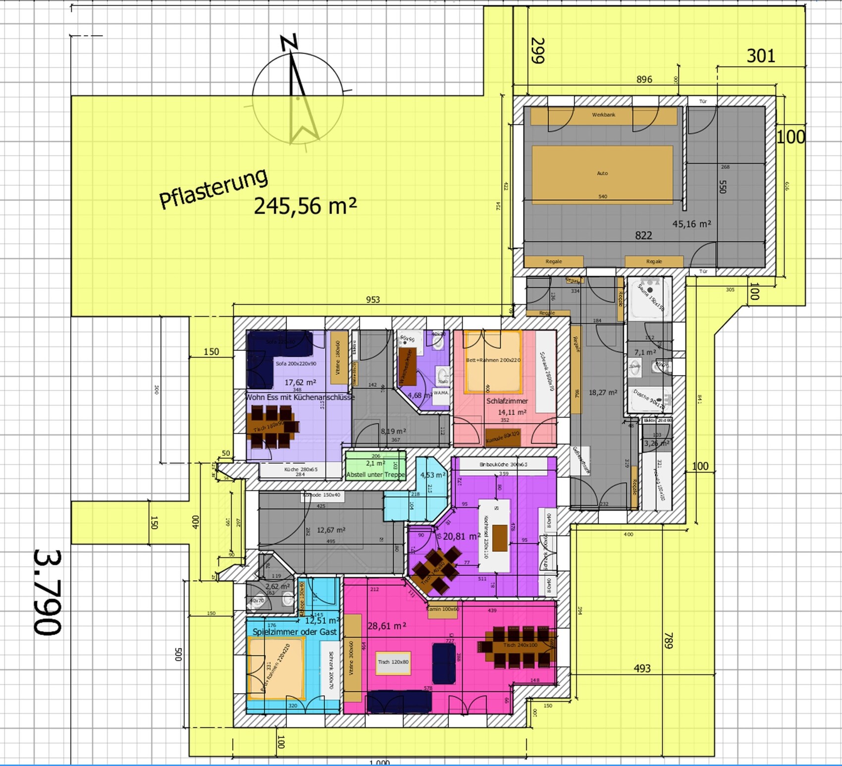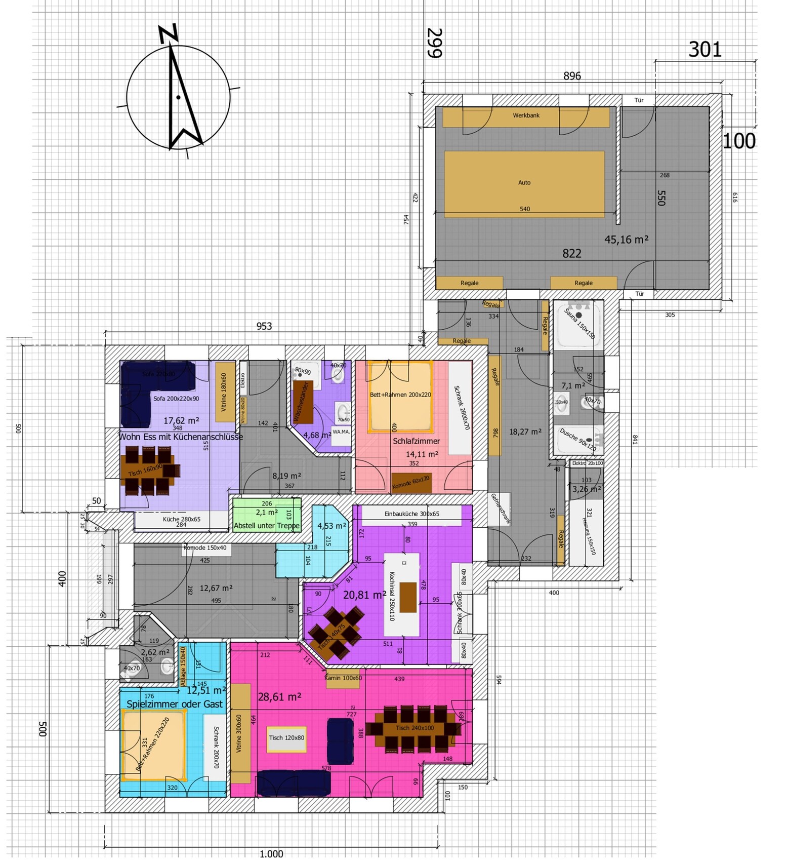 Da sind doch einige Objekte, die sich gegenseitig stören... zB bekommt der eine beim Sitzen die Tür in den Nacken, eine andere Tür kann man nur zu einem Drittel in der Breite nutzen.