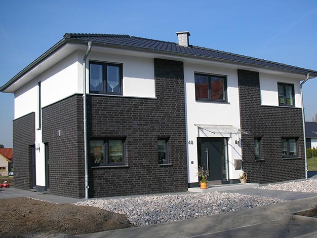 -Das Haupthaus soll mit der längeren Seite an der Zufahrtsstraße sein und mittig soll der Eingang sein, so wie in den Beispielfotos hier: