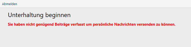 Seite: Unterhaltung beginnen; Hinweis: Zu wenige Beiträge, persönliche Nachrichten gesperrt.