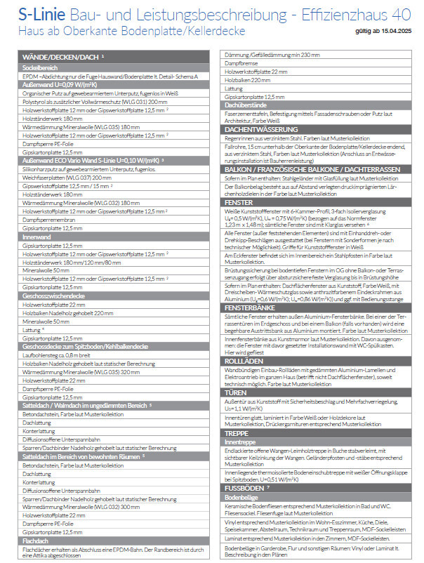 Fehlt noch etwas?Ja, genau deshalb die Bauleistungsbeschreibung. Zu jedem Angebot gehört die Bauleistungsbeschreibung zugepackt sowie auch der Entwurf. Denn das eine Haus hat mehr, das andere Haus weniger.