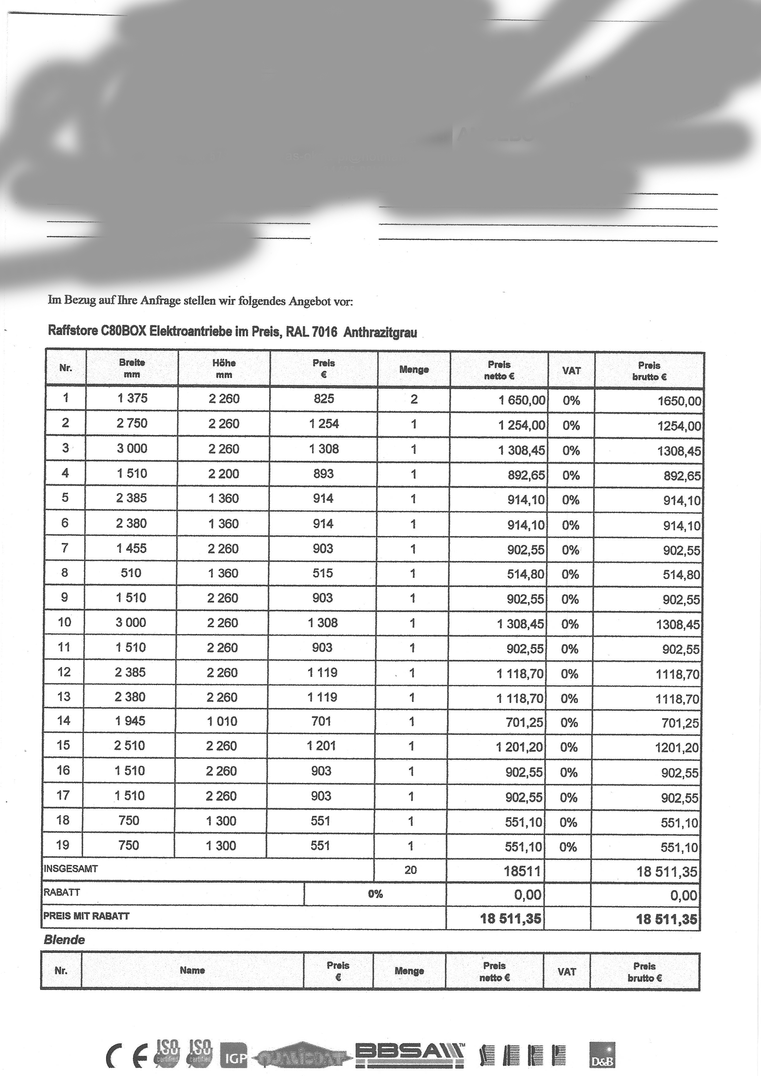 Anbei mal unser aktuelles Raffstore Angebot (ist so beauftragt allerdings mit anderen (preisgleichen) Lamellen.