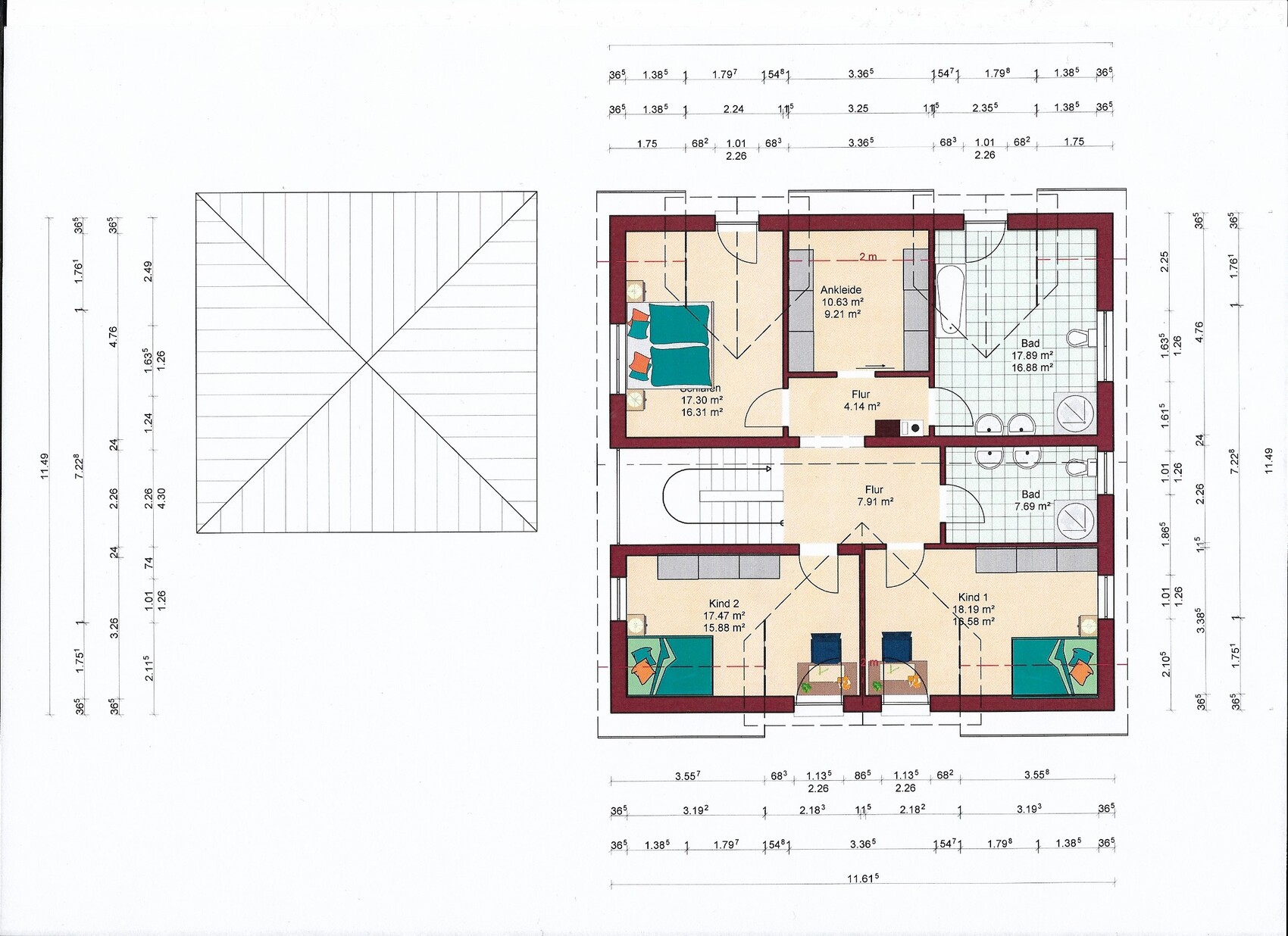 Dachform: Satteldach, 32°, Kniestock 1,5 m