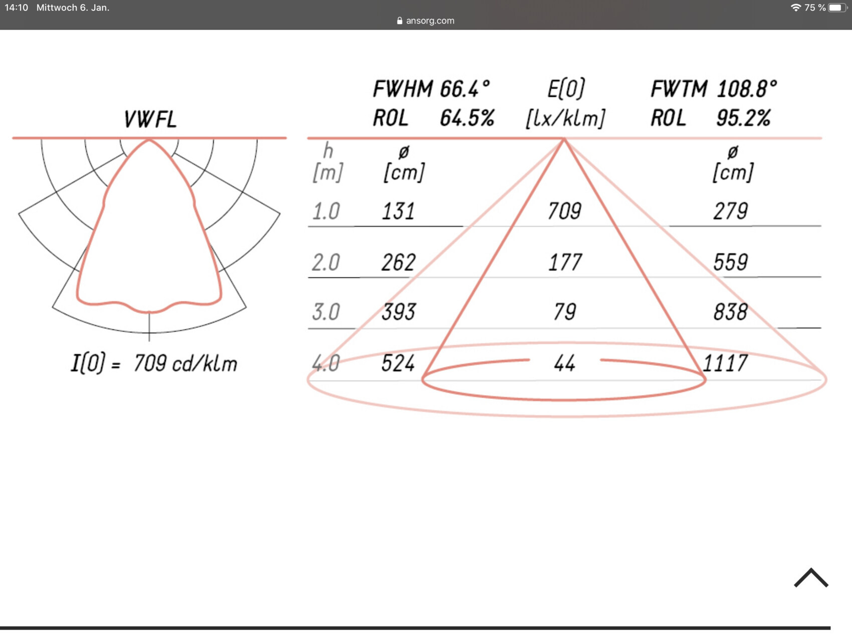 hampshire06.01.21 14:20Wir haben im Eingang 3000k hiCRI Einbauleuchten mit VEFL (very wide flood) Reflektoren in 130er Löcher und 150er Tiefe mit folgender Charakteristik eingebaut: