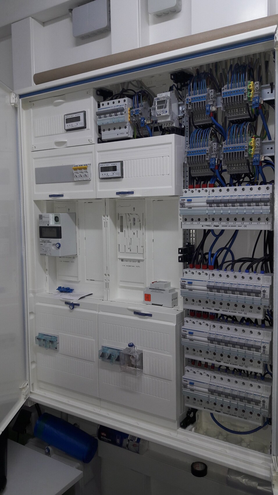 Dennoch habe ich mir die Mühe gemacht und habe meinen Zählerschrank mal auseinandergenommen, nur für dich. Vielleicht ist es keine 100%ige Referenz, aber so könnte es auch aussehen. Der Unterschied ist doch erkennbar und unser Schrank ist kleiner und doch voller bestückt.