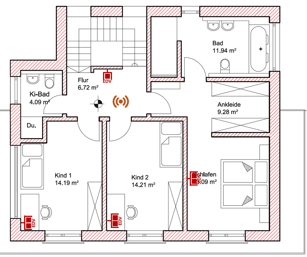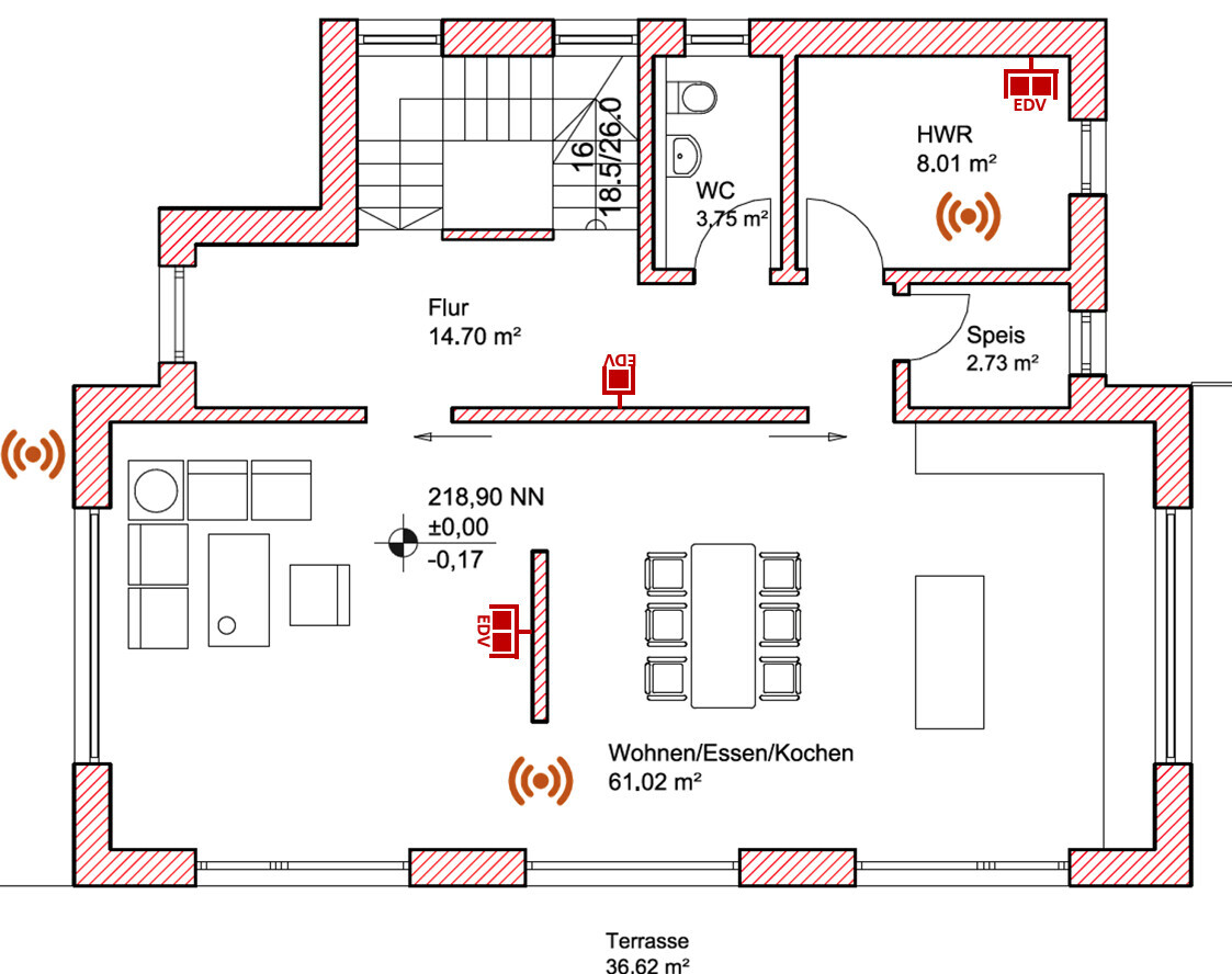 Ich würde Netzwerkdosen für folgende Bereiche einplanen: