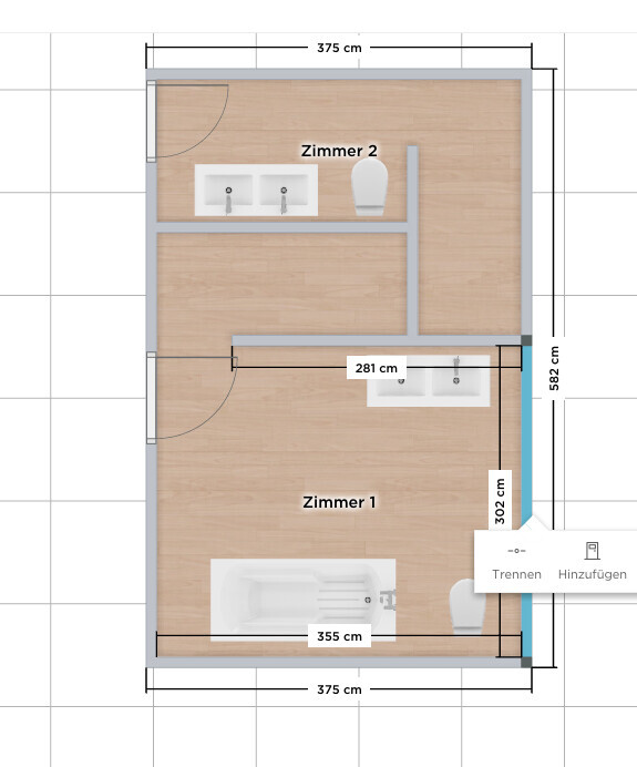 Edit: hatte matte auch schon so ähnlich dargestellt.Wie lang ist denn der T-Strich? Wie lang die Wand an der Dusche und an der Kloschüssel?