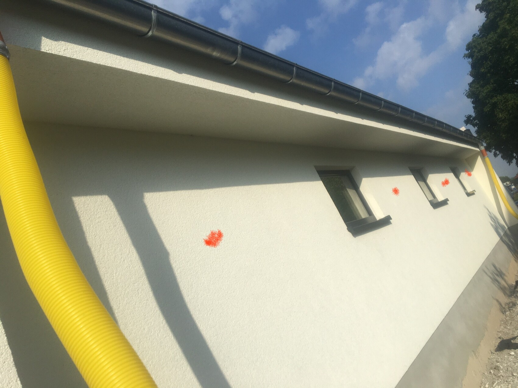 Garage ist aus Ytong und Ringanker hat umlaufend 4cm Dämmung. Dach bekommt 12cm und Auskragung hat 8cm unten/seitlich. Hatte mir Wärmebrückentool so ausgespuckt, obwohl denke ziemlich überdimensioniert. Inkl. Putz und all in ist die Auskragung nun 44cm