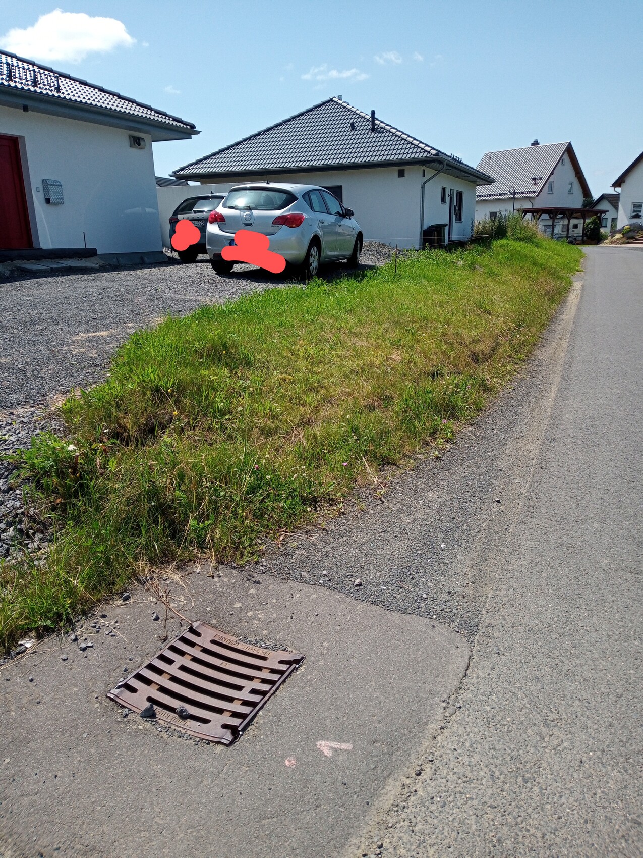 Die Frage ist halt wenn da wo der Gully ist noch ein Gehweg hinkommt, wie viel von der Böschung entlang der Straße flöten geht?