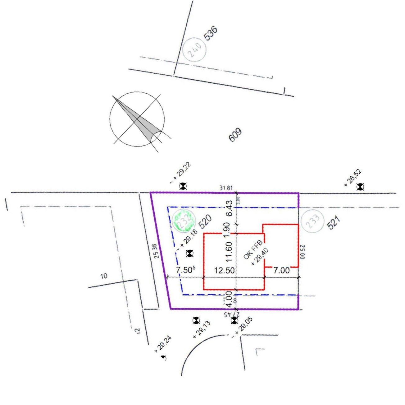 Links müßtet ihr auch mit Garage 3 m von der Grundstücksgrenze wegbleiben? Und dort im 3m-Bereich eine Hecke setzen?