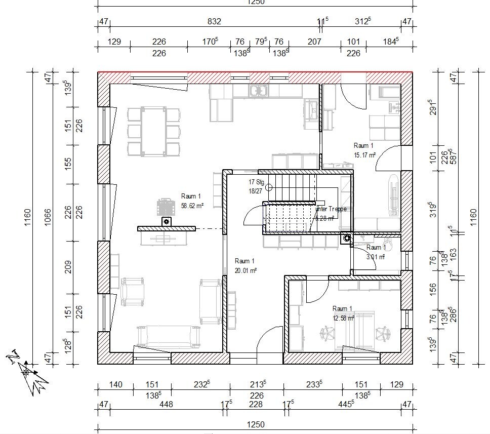 Die grundsätzliche Aufteilung habe ich gelassen, die war ja auch schon gut durchdacht. Aufgrund Treppenänderung waren aber doch ein paar Anpassungen notwendig, die erwähne ich jetzt mal Punkt für Punkt