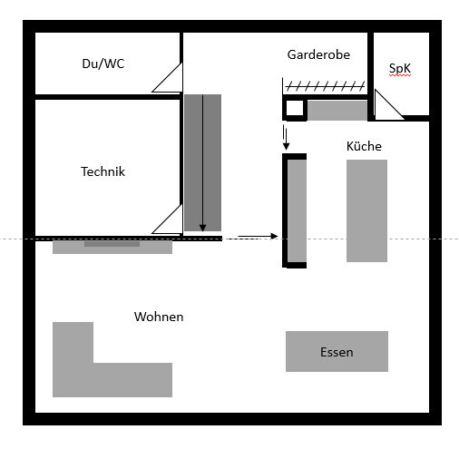 Die Änderungen, die du vorgenommen hast, na ja .. Laufwege Küche sind immer noch vorhanden.