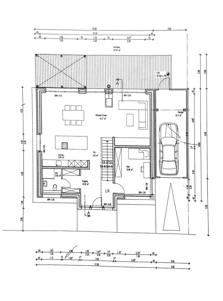 Was gefällt nicht?: EG: derzeit scheint uns der Abstand vom Wohnbereich zum Kamin sehr knapp.