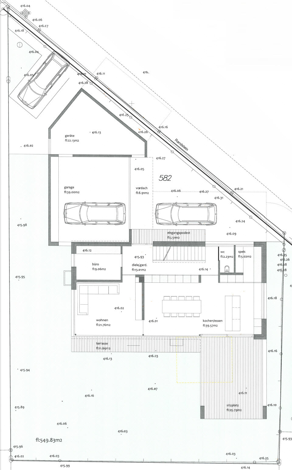 Die Abstände auf diesem Plan sind etwas zu schmal. Bedeutet dass das Haus hier auch noch mehr Richtung Süden platziert werden müsste!Grundsätzlich finde ich den Entwurf sich viel besser. viel besser