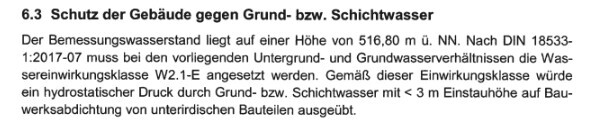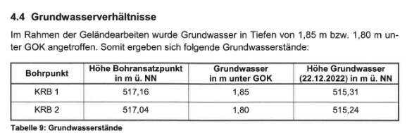 Ich habe mir deine Tabelle nochmal angesehen. Dabei fiel mir auf, dass es dort nur um Daten in geringer Tiefe geht. Hast du denn im Bodengutachten explizit das Kapitel Grundwasserabsenkung oder Bauwasserhaltung? Mit den Daten aus der Tabelle konnte ich letztlich wenig Anfangen.