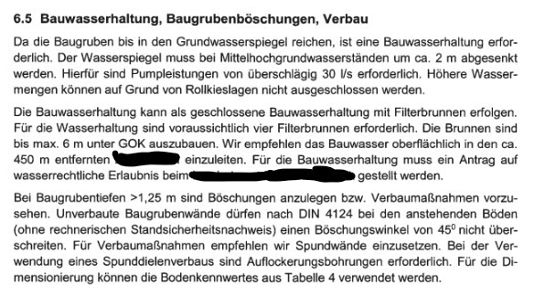 Allthewayup20.03.24 17:34Ich habe mir deine Tabelle nochmal angesehen. Dabei fiel mir auf, dass es dort nur um Daten in geringer Tiefe geht. Hast du denn im Bodengutachten explizit das Kapitel Grundwasserabsenkung oder Bauwasserhaltung? Mit den Daten aus der Tabelle konnte ich letztlich wenig Anfangen.