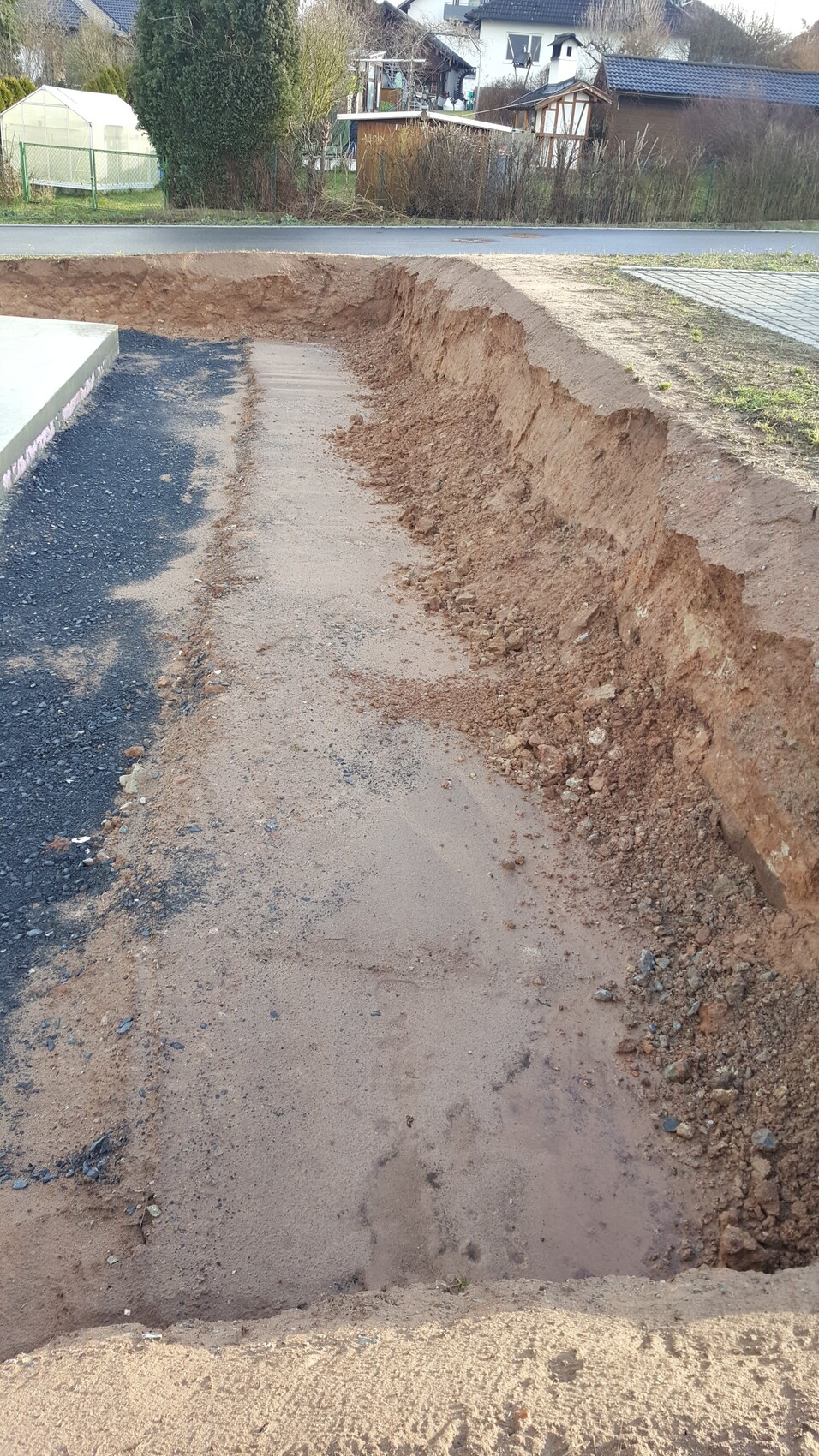 Also sieht für dich alles okay aus? Muss ich mir keine Sorgen machen, dass da immer mehr kommt.Natürlich wird die "Wand" immer mehr abbröckeln, bis irgendwann der Böschungswinkel so flach ist, dass nichts mehr nachrutscht. Macht Euch auf viel Erde gefasst, das ist normal (auch wenn es Euch tierisch auf den Sack gehen wird und es am Ende auch wieder in 2020 Geld kostet, alles wieder zu normalisieren).Was wollt Ihr denn als Abstützung dagegen setzen? L-Steine?