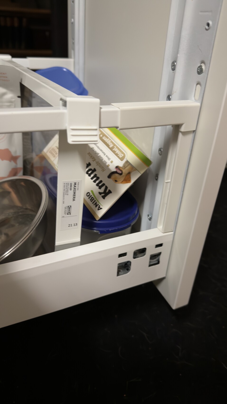 Sind aber auch von den bekannten Markenherstellern. Kann man sich bei Metod inzwischen auch mit Glas o.ä. gönnen.Aha. Noch nie gesehen. Ist auch nicht zu googeln. Uppdatera oder Maximera, Markenhersteller? Es sind halt überall irgendwelche Klammern zu sehen. Schön ist das nicht.Ich habe mir mal erlaubt, die Schubladenseite zu fotografieren. Da kann ich sagen: außen hui, innen pfui. wenn ich jetzt nicht aufgestanden wäre, wäre der Satz ausgeblieben. Ich habe letztendlich mehr als 400€ für diesen Schrank ausgegeben (ohne seitlichen Glaseinsatz) und letztendlich war ich so ernüchtert und ohne Euphorie, das ich mir sogar gespart habe, den Aufkleber zu entfernen.