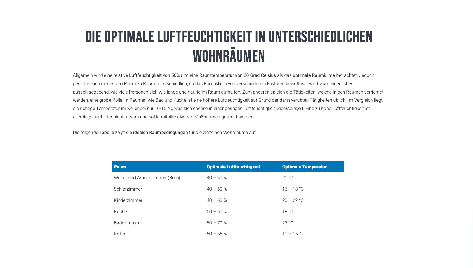 Ich habe mir mal die Mühe gemacht und die optimale Luftfeuchtigkeit in Räumen zu recherchieren.