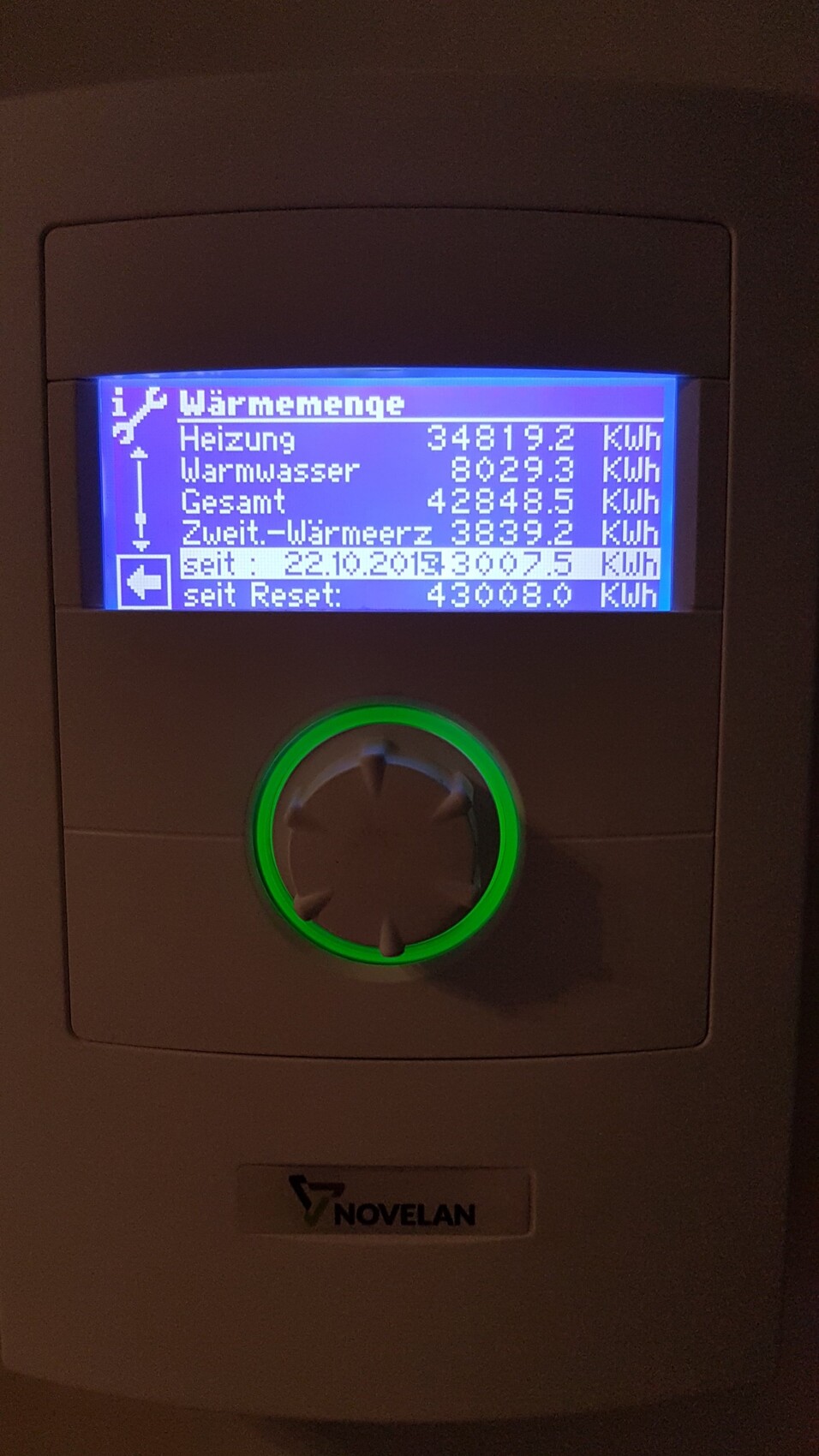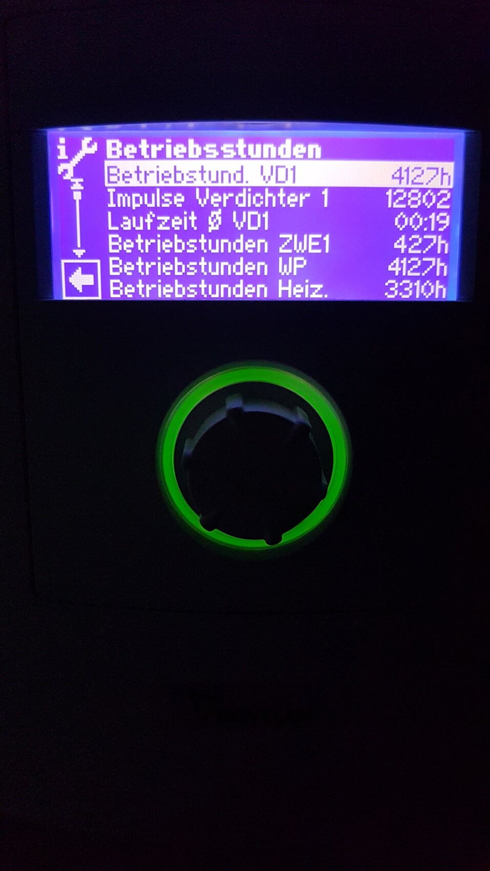 Ich bekomme auf meiner Novelan leider nur Logdaten bzgl. Wärmemenge und Laufzeit der Pumpen (siehe Anhang). Der Strombedarf vermischt sich im bidirektionalen Zähler leider mit Photovoltaik-Erzeugung und vielen anderen Verbrauchern.
