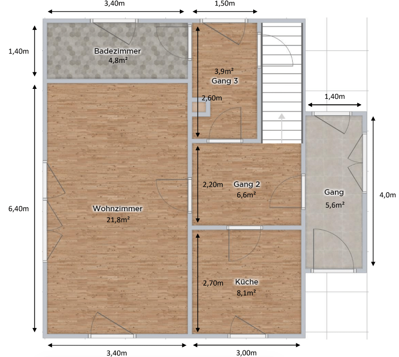 Wir sind im September 2020 angelangt und die Planung hat mittlerweile Gestalt angenommen. Aus den bestehenden Grundrissen sollten sich die Räume wie folgt aufteilen. Die bestehenden Grundrisse waren zu diesem Zeitprunkt noch nicht ganz maßstabsgetreu, aber zur Veranschaulichung reicht es. 🙂