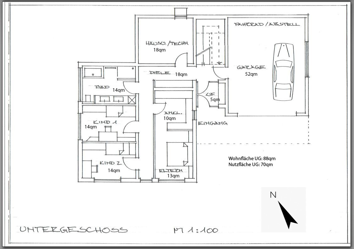 Aber die Räume im UG sind jetzt unserer Meinung nicht so groß (außer der Flur).