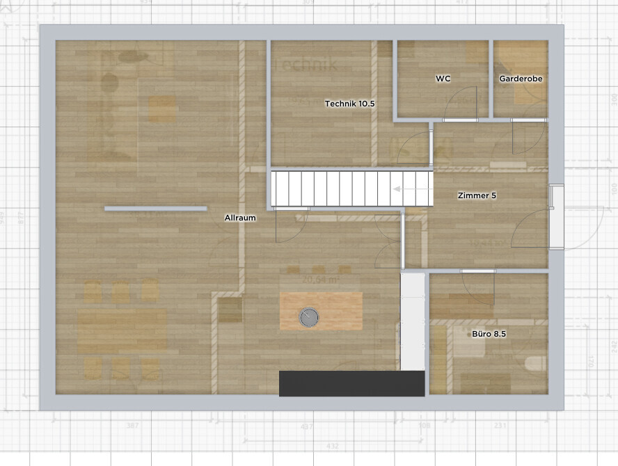 Hier geht es mit der Planung los, dann schaut man sich an wie man das was für das Leben im Haus wirklich wichtig ist zu den gegebenen Bedingungen in Architektur gießt. Einen Grundriss zu nehmen und eine aus optischen Gründen bevorzugte Form und darin die Räume zu verteilen ist nicht einmal der zweitbeste Weg in der Herangehensweise.