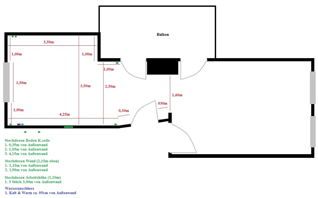 heute war ich die Wohnung, Steckdosen, Wasseranschluss, etc. ausmessen.