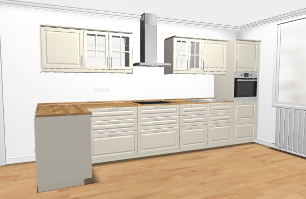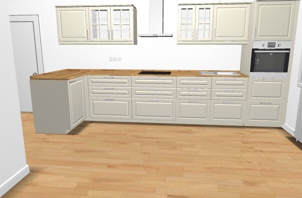 Das Induktionsfeld kann ich auch nicht weiter verschieben, da bei 300cm von der Wand berechnet 3 Steckdosen sind für eben Küchengeräte (wieder Mitte gemessen)