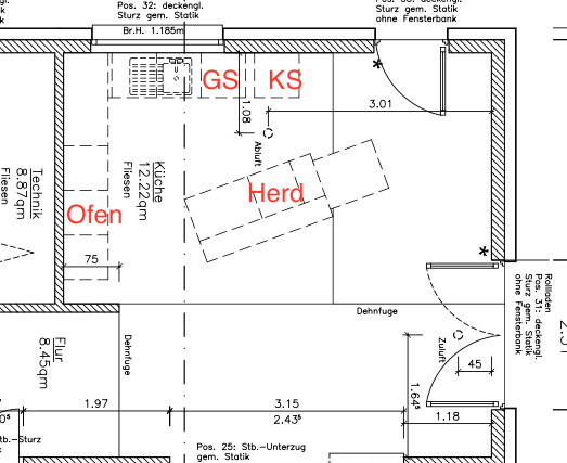 Im Anhang mehr vom Grundriss @ypg 🙂Ok... unter der Treppe, da soll die Speis hin, oder?Ich würde im "Eingangsbereich", dort wo die Hochschränke eingezeichnet sind, nicht unbedingt auf die Wand Wert legen. 60er an der Seite, aber dann ist auch gut.