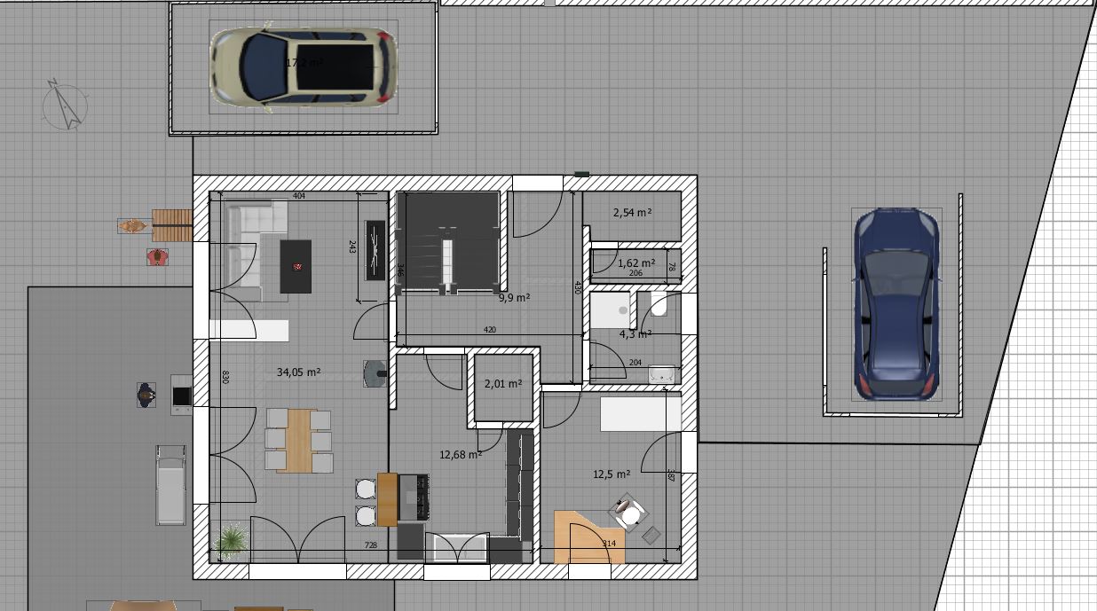 Mit dem eingezeichneten Plan und der Position Kamin etc. finde ich die Küche auch nicht überdimensioniert, so dass sich da kein Platz für die Treppe schinden läßt. Zumal es dann im OG mit den Zimmerzugängen eng wird.