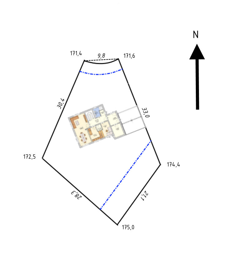 Schreibe hier sonst eher nicht, aber der Vorschlag ist sehr dicht an unserem Haus, inkl. Nordpfeil.