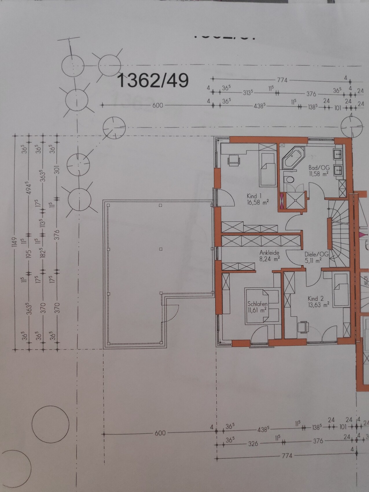Sagen viele. Macht aber nicht viel aus. Für den Handwerker „Pfennigbeträge“. Und wenn es 500€ sind: für ein Optimum an Entwurf sollten die doch drin sein. Man gönnt sich ja auch einen zweiten Waschtisch und eine zweite Dusche,Wenn es da um ein paar hundert Euro geht würde uns das sicher nicht aufhalten. Also die Küche z.B. in L-Form in den Südwesten ziehen, dann wäre da auch evtl. eine kleine Insel an der Position an der jetzt der Coutisch eingezeichnet ist möglich. Dann evtl. auch die Säulenlösung hinsichtlich der zentralen Wand. Werde mir das mal Zeichnen, auf jedenfall ein interessanter Vorschlag insbesondere da wir sicher mehr Zeit in der Küche tagsüber (Südwestausrichtung) als auf der Couch verbringen. Dann wäre da auch die Nähe zur Terrasse sicher vorteilhaft.Das eine Kinderzimmer ist eine Mogelpackung: der Eintritt ist ein Nadelöhr. Die eingezeichneten Möbel zeigen, dass man das eine Regal dann doch lieber woanders hinstellen sollte.Ich denke du sprichst über das Kinderzimmer im Norden? Eine Möglichkeit wäre ja das jetzige Schlafzimmer und das nördliche KZ anzugleichen und letzlich zu spiegeln, in dem das Ankleiderzimmer wegfällt und die Trennwand etwas nach Süden gezogen wird. Insbesondere in Anbetracht des Elternzimmer unterm Dach (s.u.). Später auch für die Kinder die Möglichkeit gleich große Zimmer zu haben. Ablagefläche habt ihr im Keller ja mehr als genug...