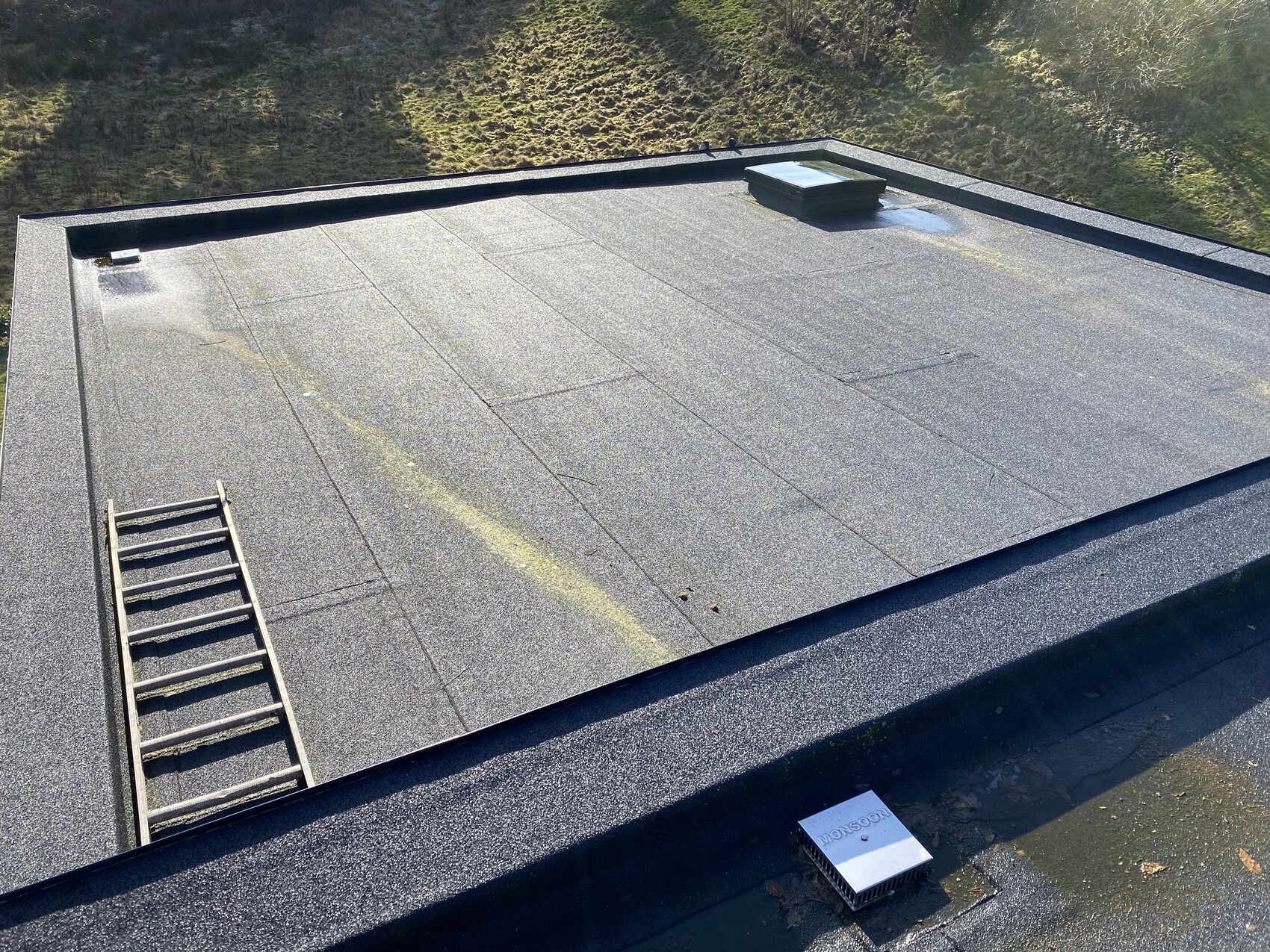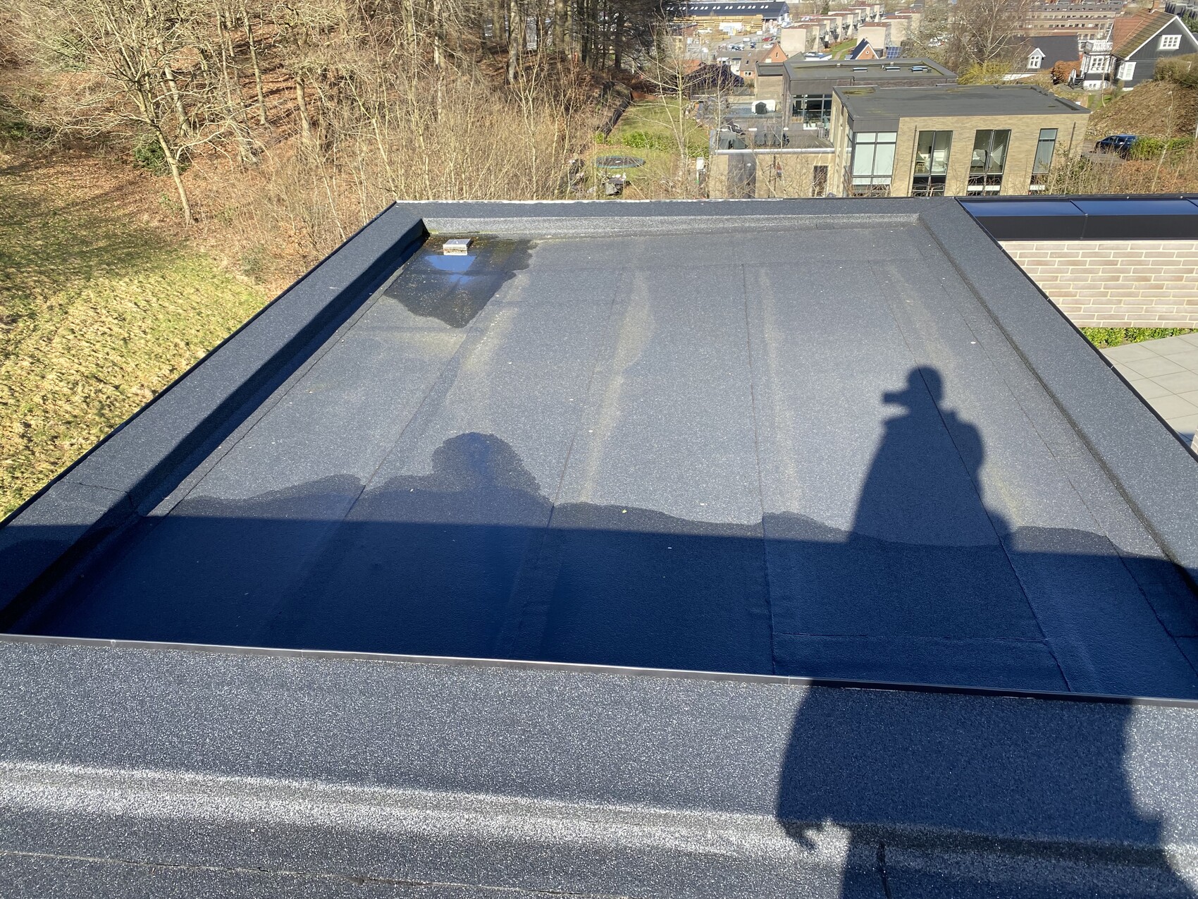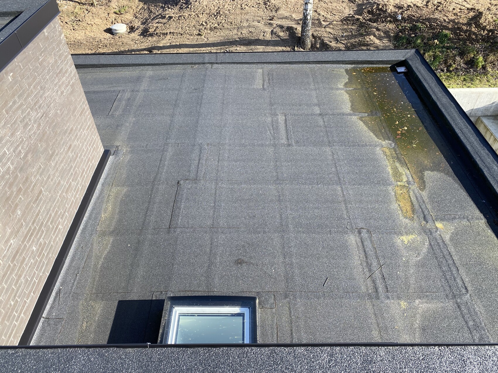 Ich würde auf Flachdach immer 15° aufständern. Normalerweise Ost-West. Aber das hängt vom Platz ab. Nord-Süd geht auch. Ohne Aufständerung musst Du jährlich putzen, wie man an den Bildern der bestehenden Module auch gut sehen kann. Der Schmodder kostet locker 20% Leistung, also weg damit!