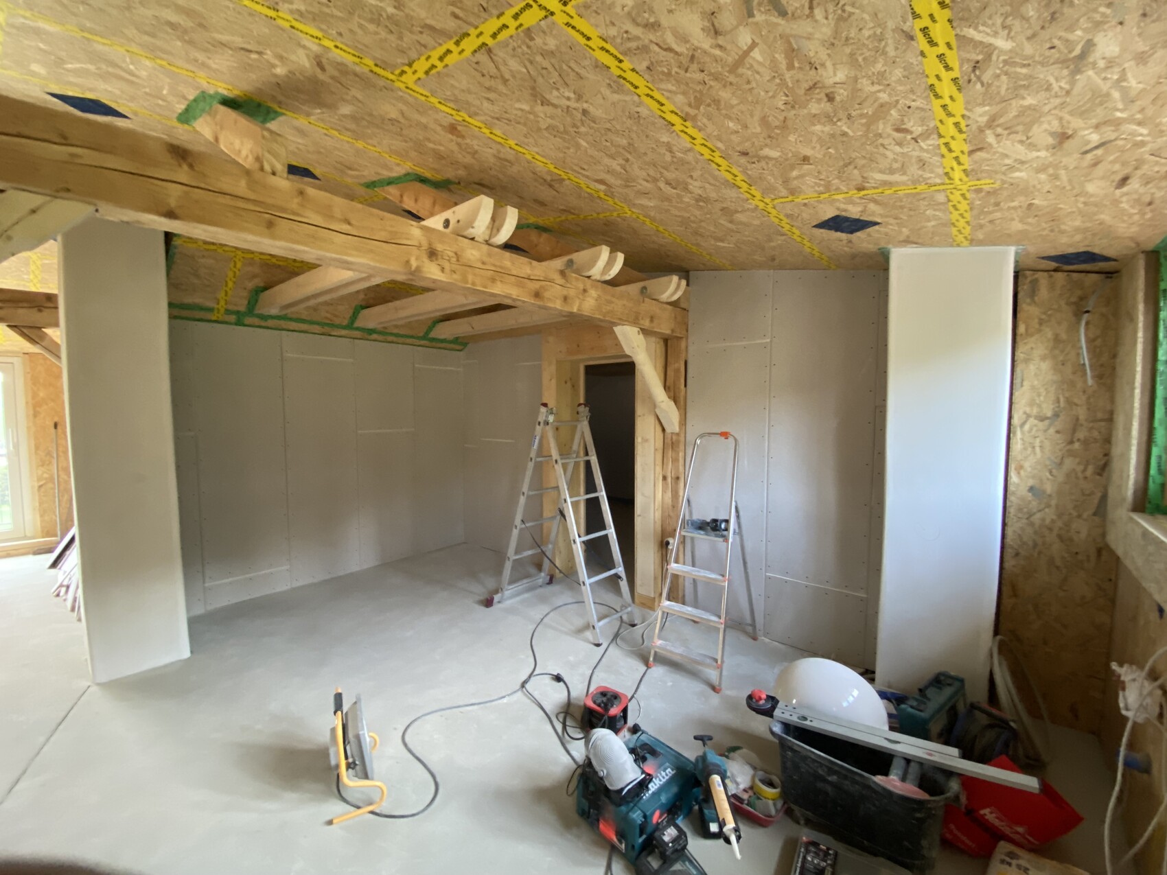 Danke, die Sanierung wäre einfach zu aufwändig gewesen und hätte möglicherweise auch nicht so gut funktioniert. Das Dach musste für die Flachziegel absolut gerade sein und ich weiß nicht, ob die letztliche Ausführung komplett ohne Zangen statisch so einfach möglich gewesen wäre. Wir haben die alten Dachbalken der zwei Satteldächer aus dem 19. Jhd aber aufgehoben und gut gelagert. Ein Teil davon wird für dekorative Zwecke wie eventuell am Kamin zum Einsatz kommen und der Rest verkauft.